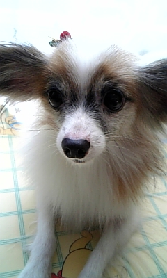 一応犬種は「パピヨン」なのですが、こいつがまたちっこい奴で;。パピヨンの平均体重は4~5kgくらいなのですが、こいつは普通と比べて体がちっこいので2.5kgしかありません。もう成犬で4歳なのになんて奴だ^^;