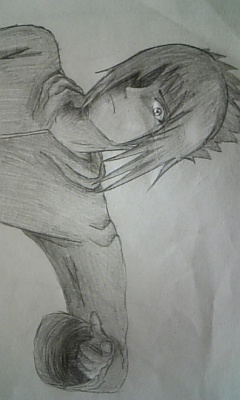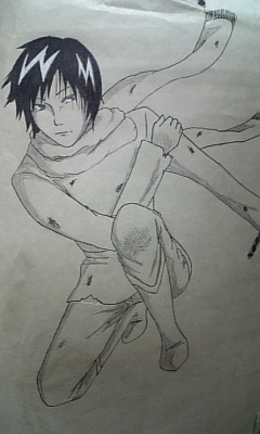 2枚目、このサスケ君(だと思って)は、紙の白い部分をなるべくなくして絵を描いたらこの前楽しかったので、